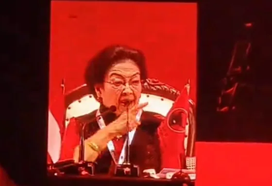 Orasi politik Megawati saat Rakernas dan perayaan 53 tahun PDI Perjuangan di Beach City International Stadium, Ancol, Jakarta, Sabtu (10/1/2026) lalu. Mengusung tema Satyam Eva Jayate (kebenaran yang selalu menang), Di Sanalah Aku Berdiri untuk Selama-lamanya.