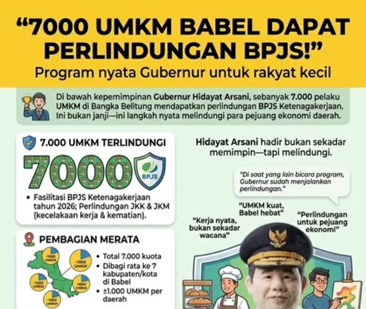 “Akan disalurkan kepada pelaku UMKM melalui APBD tahun anggaran 2026. Program ini merupakan langkah konkret Gubernur Bangka Belitung bapak Hidayat Arsani dalam memastikan bahwa pemerintah tidak hanya memimpin, tetapi juga hadir memberikan perlindungan bagi para “pejuang ekonomi” daerah,” ungkap Plt Kepala Dinas Koperasi dan UKM Provinsi Babel, Riza Aryani.