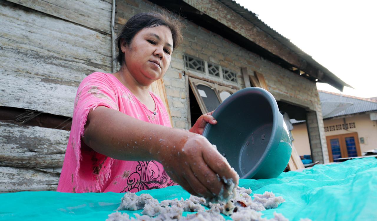 “Saya tambah modal juga untuk beli jaring, perahu untuk nyungkur. Semakin banyak bahan baku, semakin banyak produksi terasinya,” ujarnya.