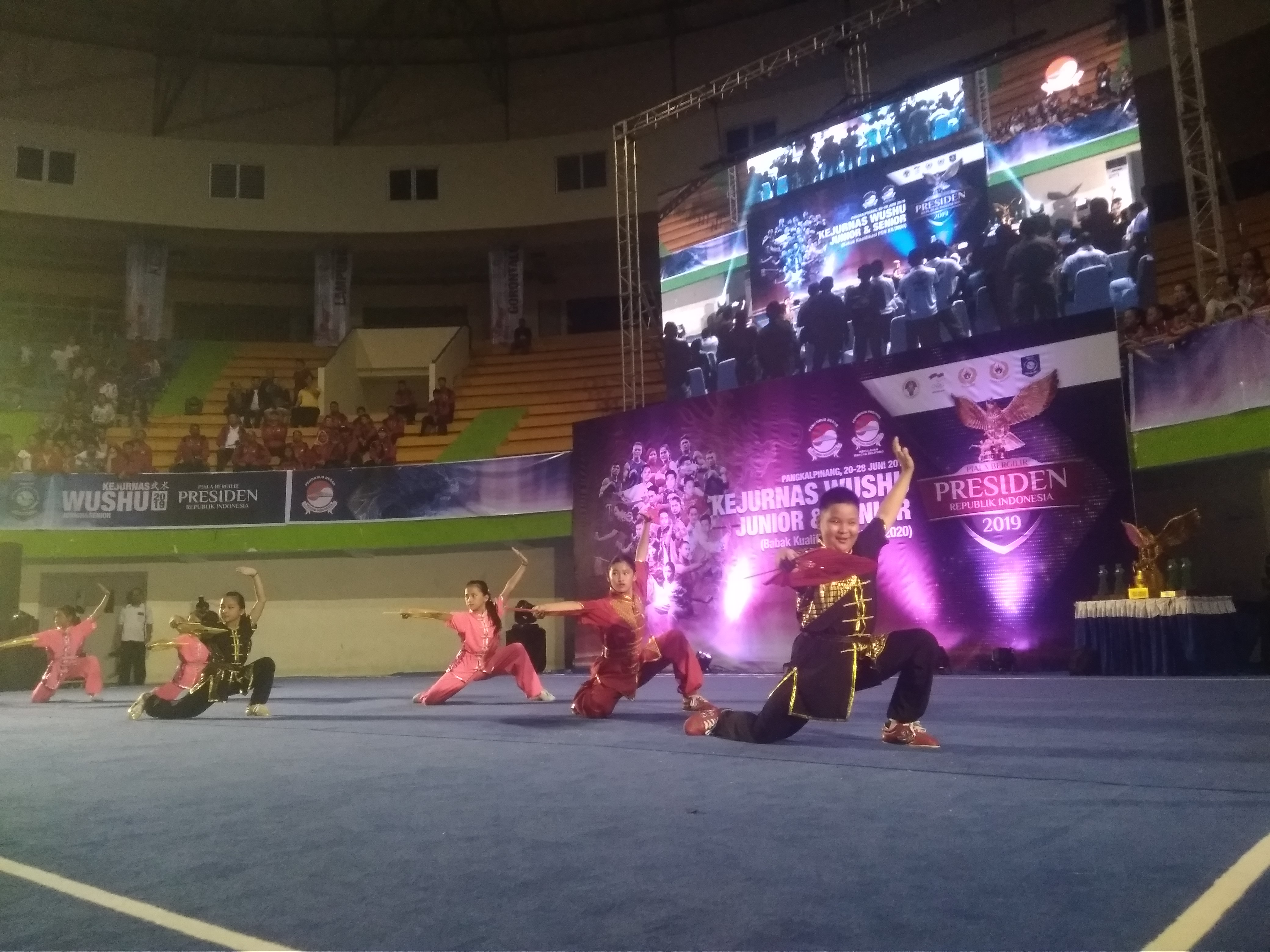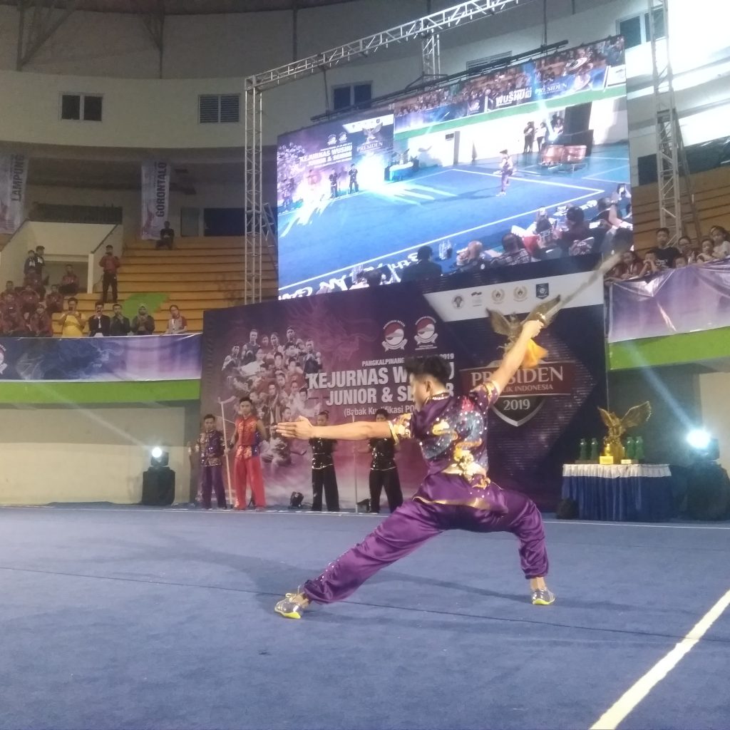 Seputarbabel.com, Pangkalpinang – Kejuaraan Nasional (Kejurnas) Wushu Junior & Senior telah berakhir, Kamis (27/6/2019) sore. Wushu Provinsi Kepulauan Bangka Belitung (Babel), meraih 2 medali emas di kelas Taolu junior pada ajang perebutan piala bergilir Presiden Ke II tahun 2019 di GOR Sahabudin tersebut. Kemudian 2 medali perak dari kelas Sanda junior dan 1 perunggu di kelas Sanda senior.