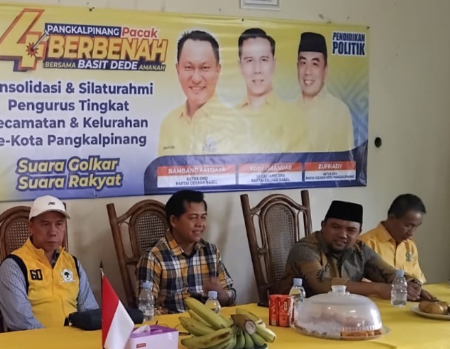 Seputarbabel.com, Pangkalpinang – Hadir langsung Ketua DPD I Partai Golkar Babel, Bambang Patijaya (BPJ), Calon Walikota Basit Sucipto dan Wakil Walikota Ustad Dede Purnama Alzulami. Sekretaris DPD I Partai Golkar Eddy Iskandar, Ketua DPD II Partai Golkar Pangkalpinang, Zufriady dan Bendahara Golkar Pangkalpinang Nursamsi.