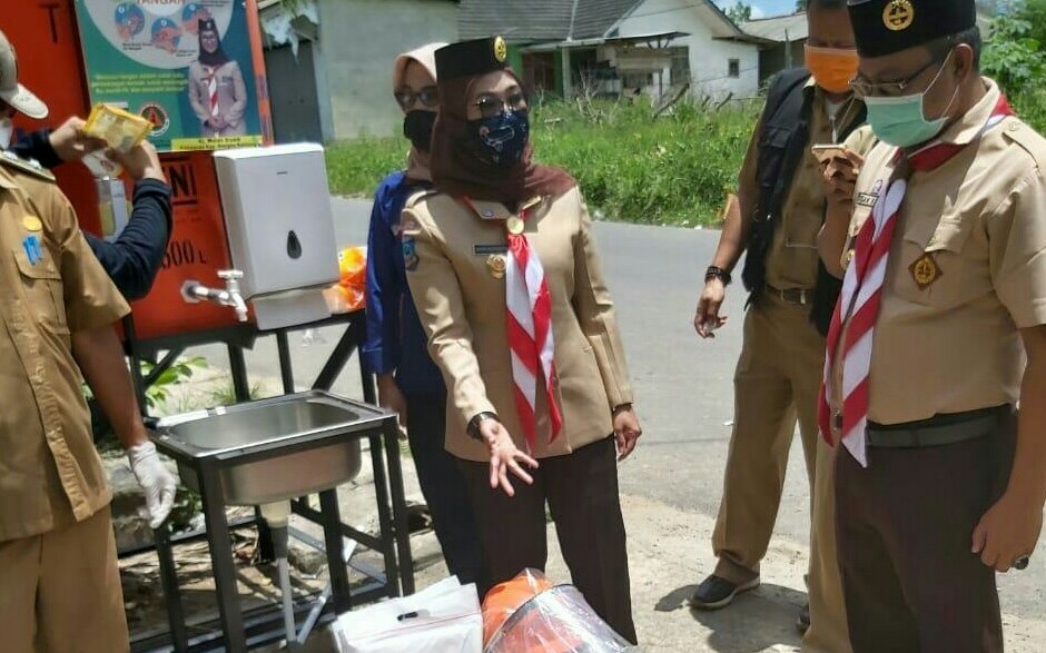 “Bantuan tempat cuci tangan ini berasal dari anggaran kwarda yang dialihkan untuk penanganan Covid-19,” jelas Melati.