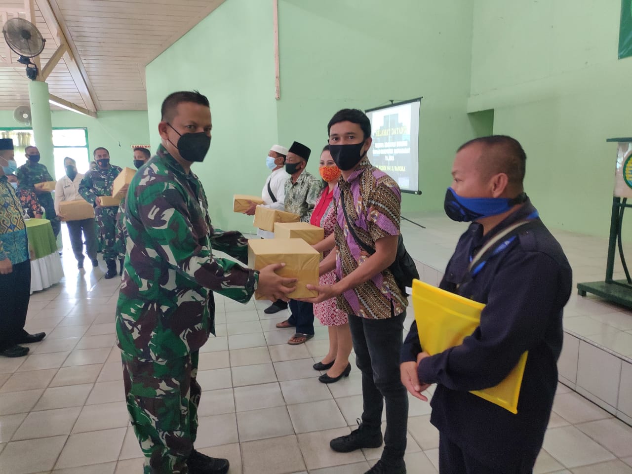 Dalam kegiatan tersebut juga Dandim 0413/Bangka Kolonel Inf Pujud Sudarmanto S.Sos membagikan paket sembako sebagai tali asih antara Kodim 0413/Bangka dengan masyarakat.