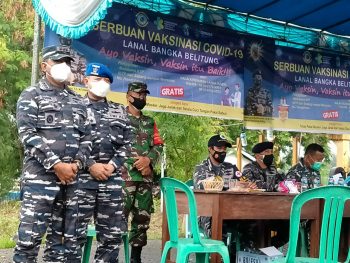 Komandan Lanal Babel Kolonel Laut (P) Dudik Kuswoyo.S.E.,M.Tr.Hanla berharap dengan adanya vaksinasi ini bisa membantu masyarakat, Angkatan Laut ini, serta Ia juga berharap dengan di adakanya vaksin masal ini masyarakat antusias untuk mengikuti, guna memutus memutus penyebaran covid-19