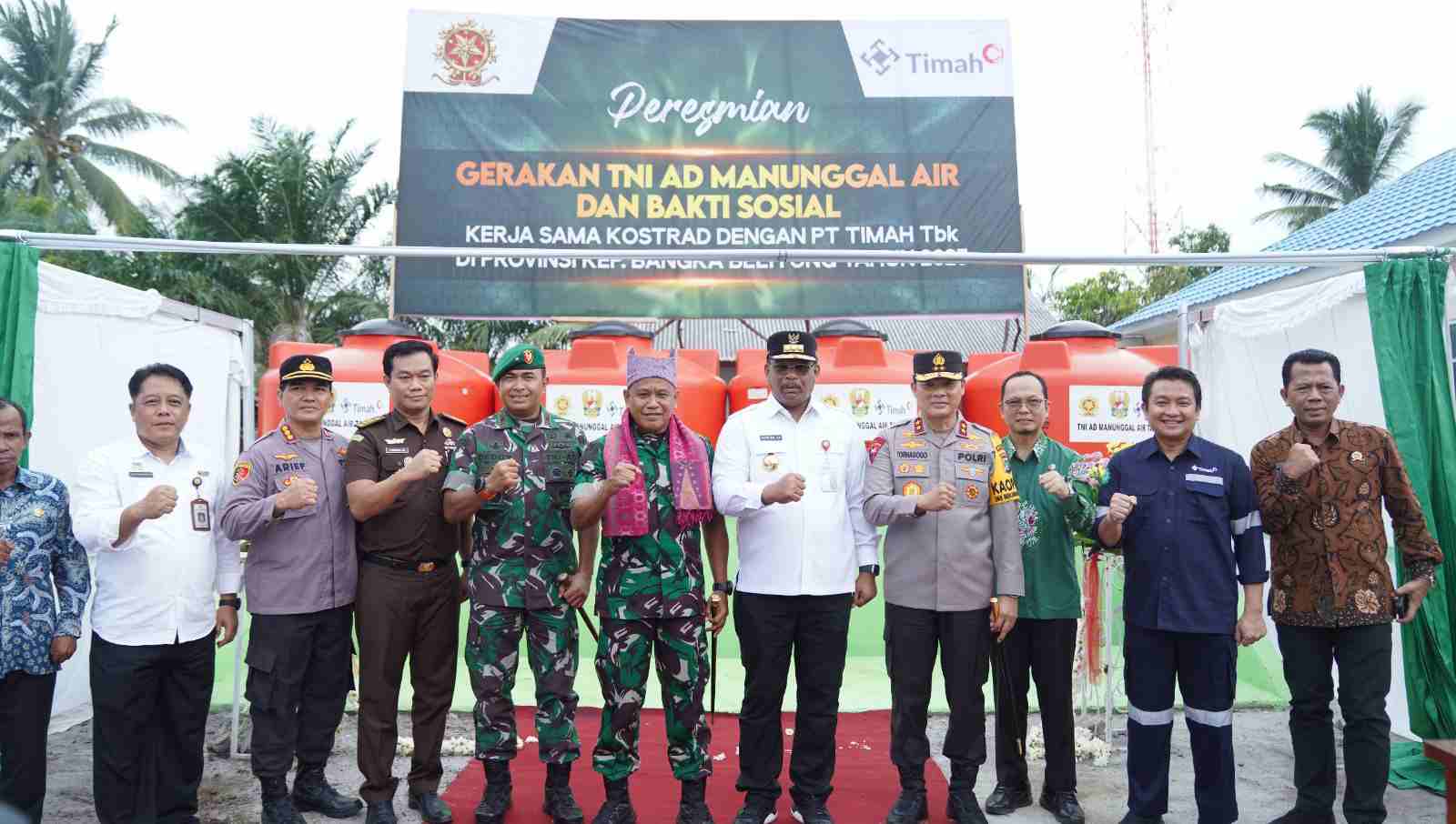 Pembangunan 20 unit sumur bor merupakan kolaborasi PT Timah Tbk dalam mendukung program TNI AD Manunggal Air untuk memenuhi kebutuhan air bersih bagi masyarakat.