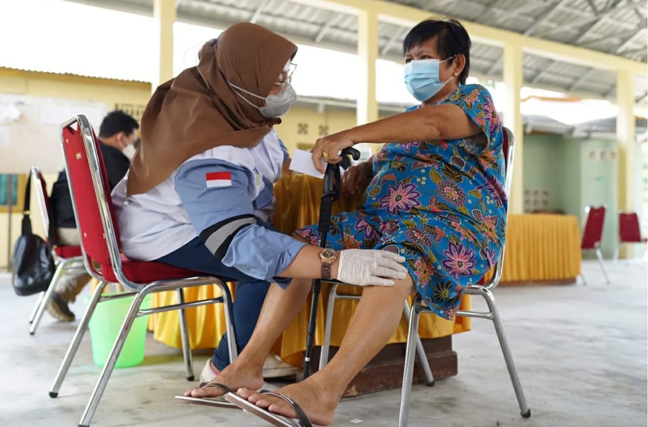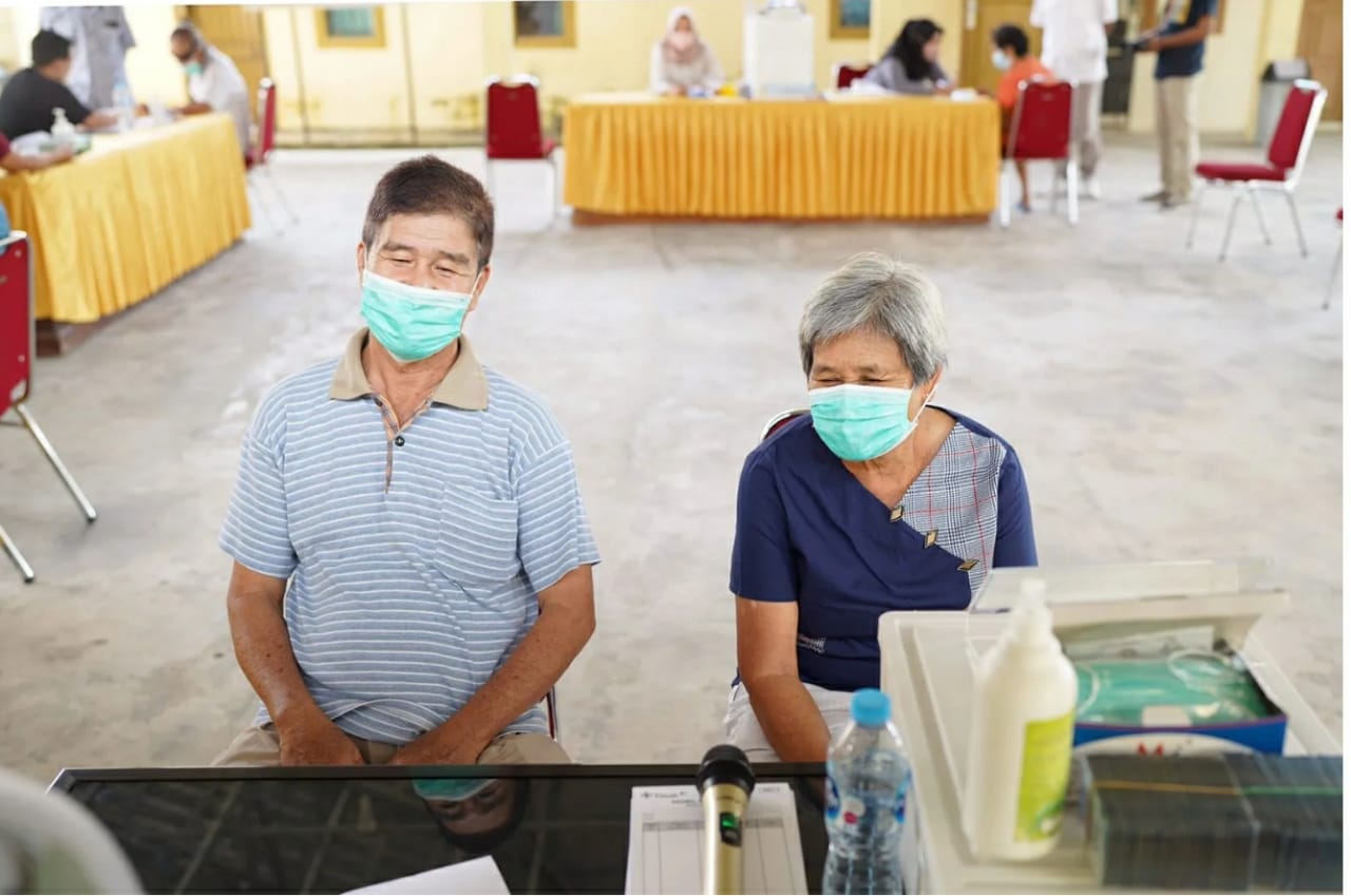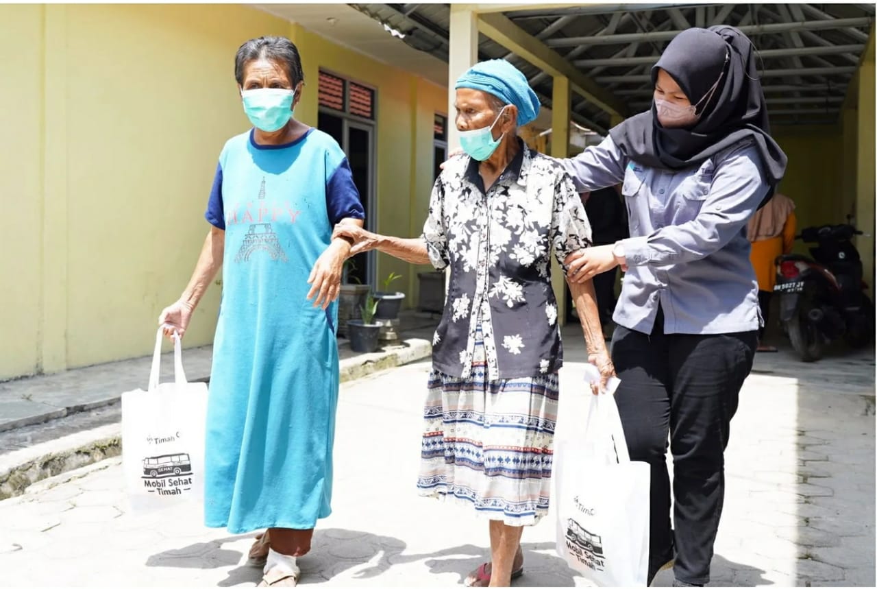 Salah satu warga Desa Deniang yang berobat, Tjong Soei Lim (66) ditemani sang anak dirinya mau memeriksakan kondisi kesehatannya di Mobil Sehat.