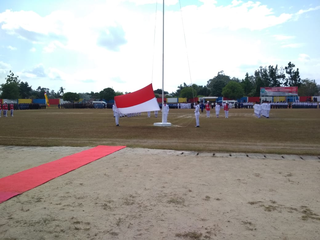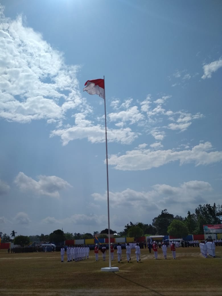 Sangsaka merah putih terus berkibar, hingga ke ujung tiang bendera dengan mulus. Hal ini di Apresiasi oleh Bupati Belitung Sahani Saleh.