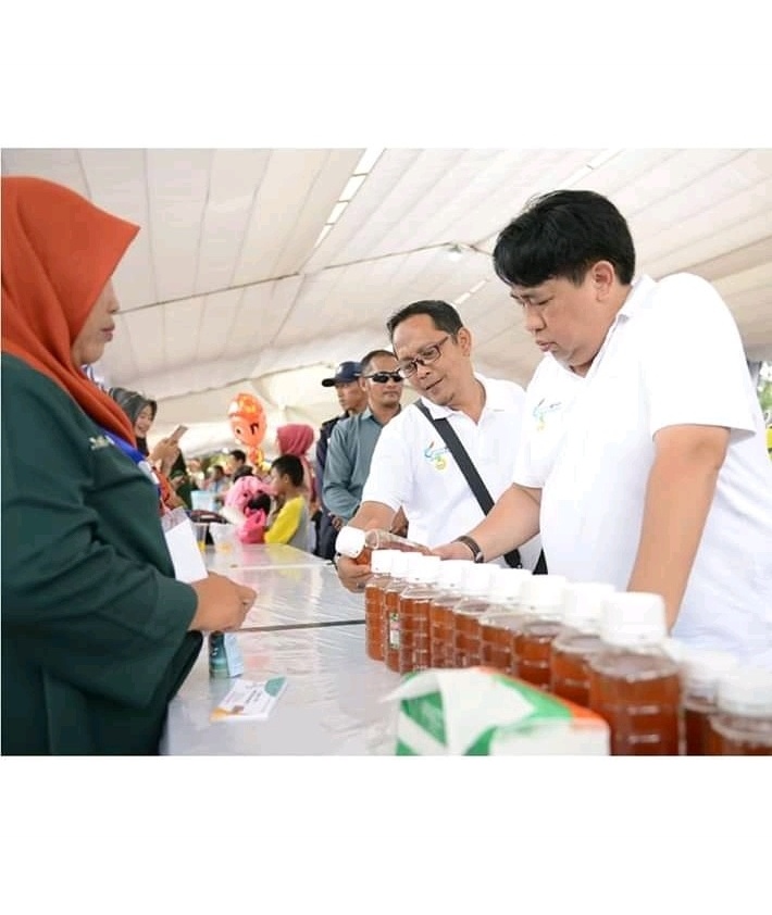 Pengusaha budidaya Kelulut, M Amir ditemui saat mengikuti stand bazar HUT PT Timah Ke-43, di lapangan tenis komplek PT Timah Pulau Kundur. Ia dibantu sejumlah rekan pekerjanya, merupakan UMKM binaan PT Timah Tbk, wilayah produksi Kepri Riau. Madu asli tersebut berhasil menjadi produk unggulan UMKM binaan PT Timah Tbk.