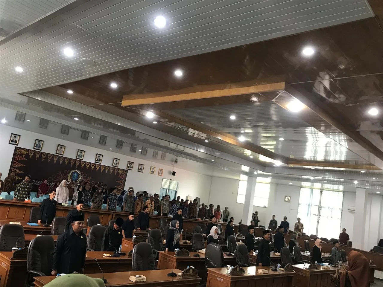 Rapat yang berlangsung di gedung DPRD Bangka ini dipimpin langsung oleh Ketua DPRD Bangka, Jumadi, S.IP, serta dihadiri oleh Pj. Bupati Bangka, Isnaini, S.Tr., S.H., M.M., jajaran Forkopimda, kepala dinas, camat, lurah, Dharma Wanita, dan insan pers.