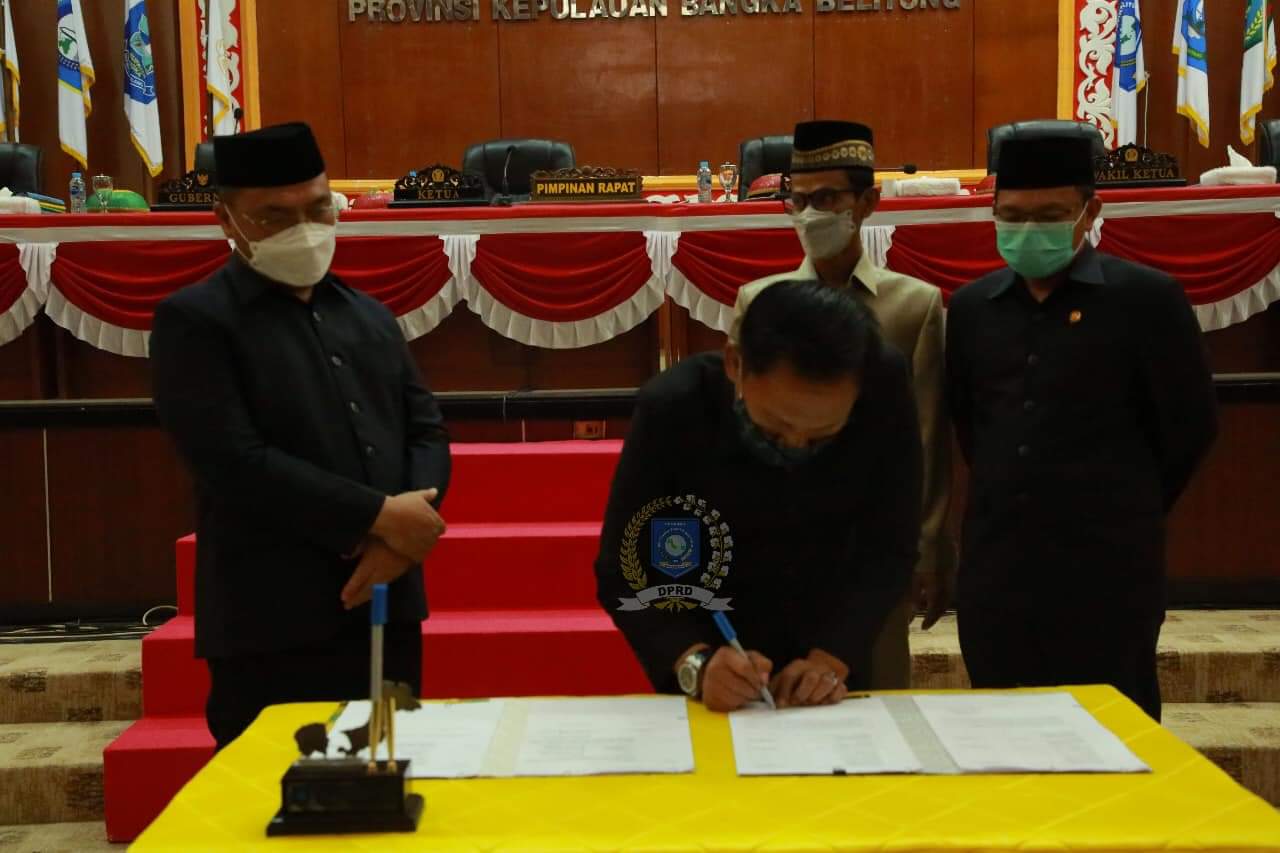 Acara diakhiri dengan melakukan penandatanganan keputusan oleh Gubernur dan Ketua DPRD Babel.