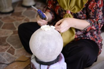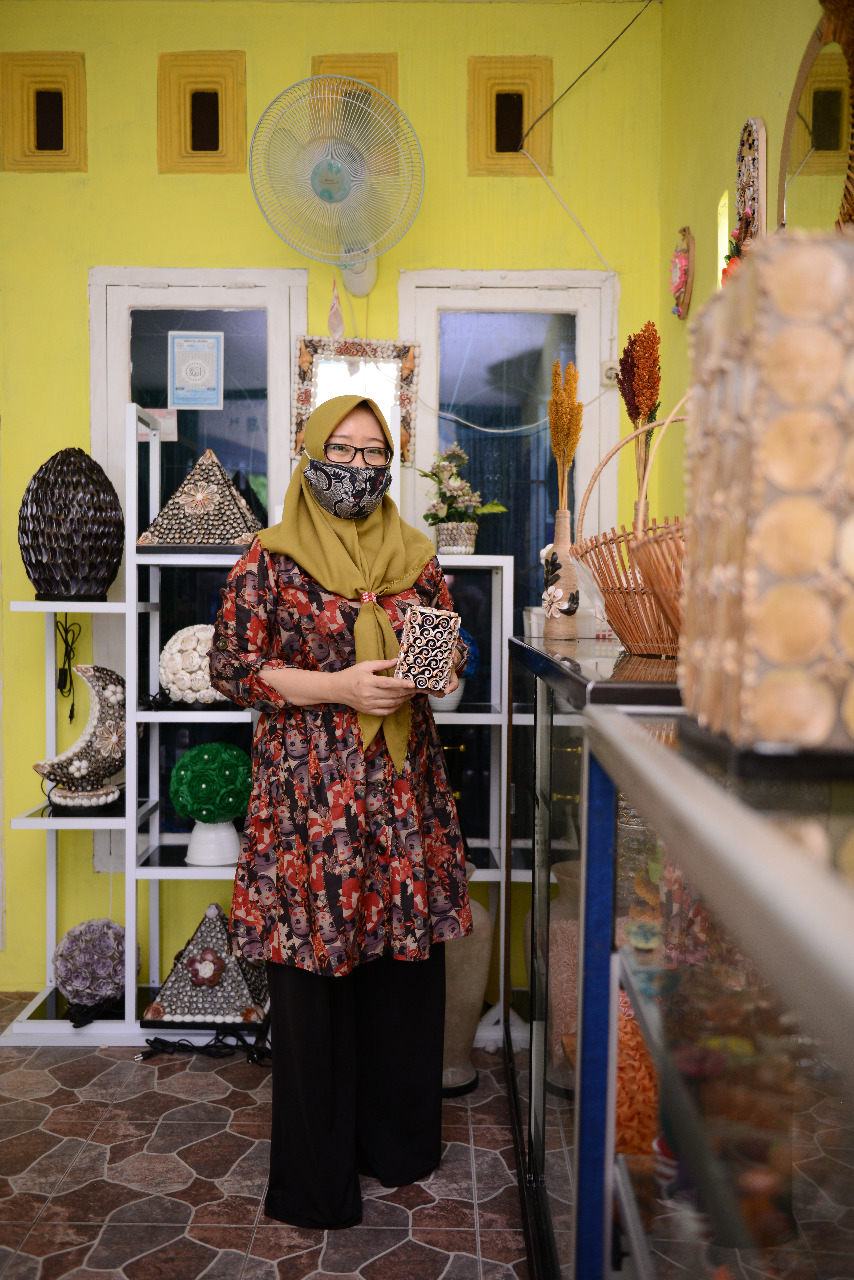 “Saya awalnya mengolah sendiri setelah diambil, dibersihkan direndam dengan cairan pemutih, baru dijemur. Cukup lama waktunya. Kadang kerangnya enggak sesuai bentuk mau kreasikan apa jadi bingung,” ujarnya.