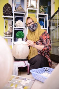 Dalam pelatihan ini, Erliana diajarkan cara mengkreasikan berbagai kerajinan kerang.  “Saya mulai buat kerajinan di tahun 2011, tapi enggak ada yang konsisten hanya musiman semua. Setelah belajar kerajinan kerang itu saya konsisten mengkreasikan, karena kerajinan kerang enggak ada musimnya, enggak ketinggalan zaman lah dan selalu ada peminatnya,” ujar Erliana.