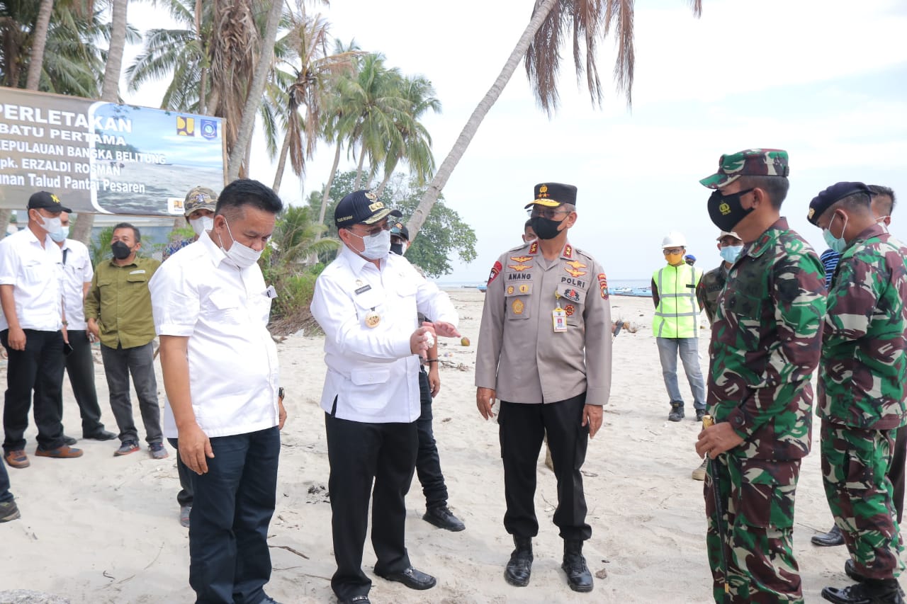 Nah, hari Rabu (9/6/2021) Gubernur Erzaldi bersama Kapolda Babel Irjen Pol. Anang Syarif Hidayat langsung meletakkan batu pertama pembangunan pengamanan abrasi pantai, di Dusun Pesaren, Desa Bintet, Kabupaten Bangka.