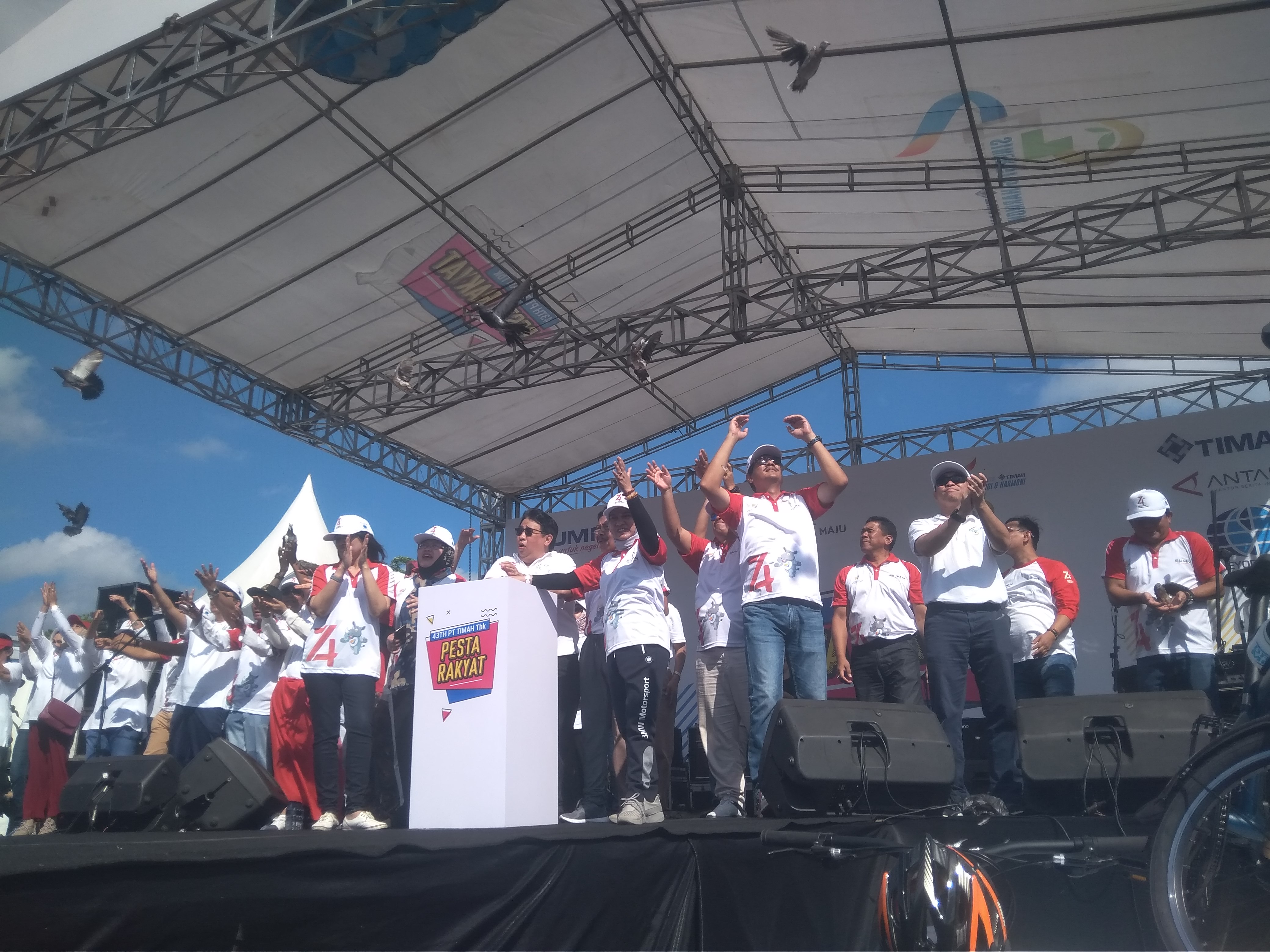 PT Timah Tbk mengahadirkan Ardi Arba, Nella Kharisma, Anima 4 Black feat Pupun Kapten dan band parodi JIGO. MC Ferry Maryadi sudah sejak pagi saat melepas peserta fun walk memandu acara. Festival Game, Senam Zumba dan Bazar Rakyat juga menjadi pilihan peserta yang menunggu kupon undian dan Andra and The Backbone.