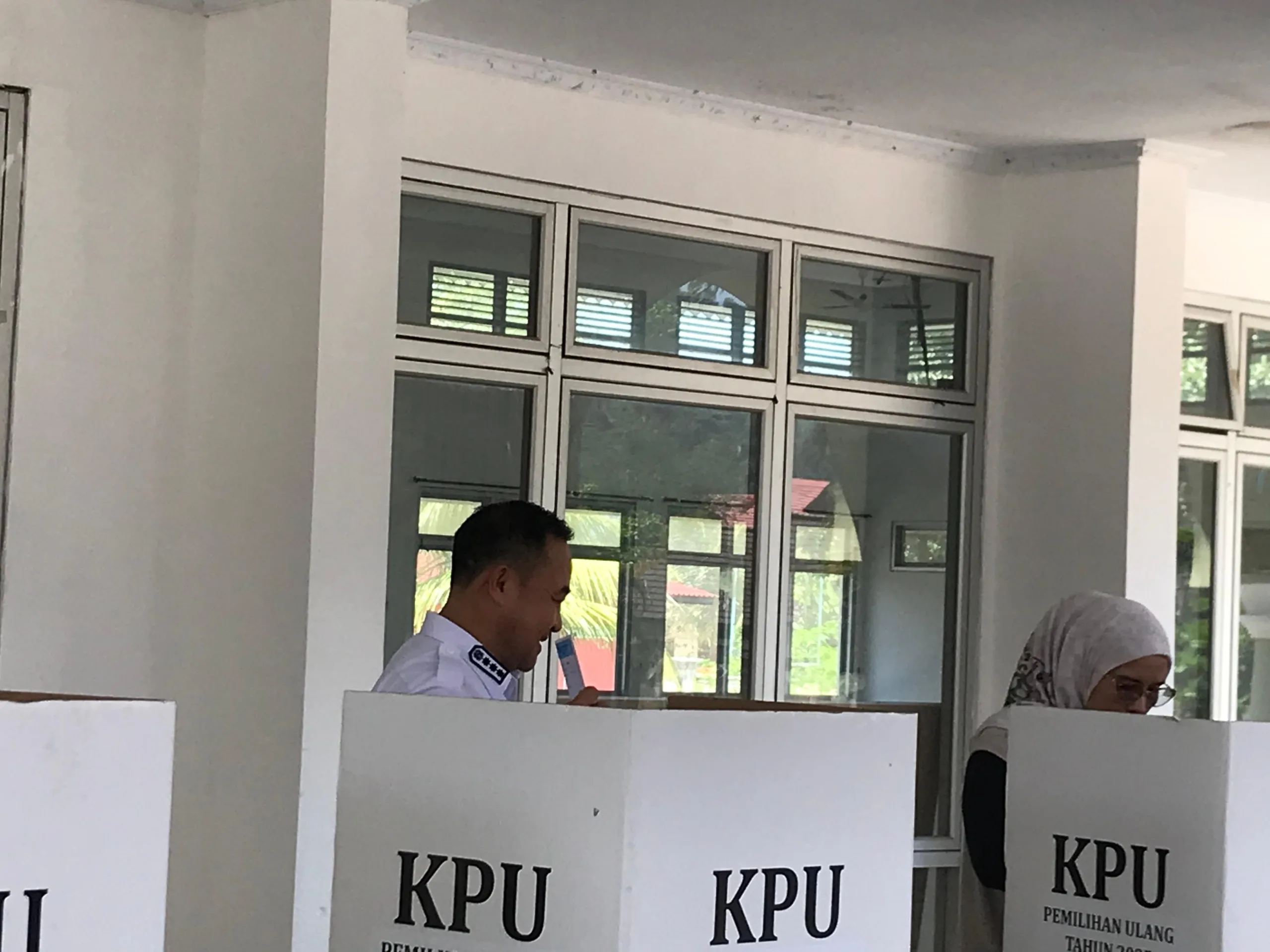 Jantani Ali hadir bersama istri dan anaknya untuk ikut serta dalam pesta demokrasi tersebut.