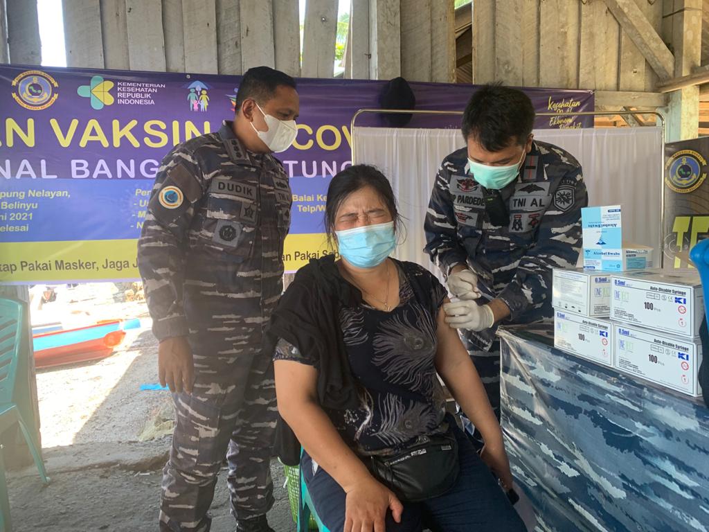 Bangka, Seputarbabel.com — Pangkalan TNI AL Bangka Belitung telah melaksanakan serbuan vaksinasi untuk masyarakat hingga hari ke tiga, yang mana program tersebut merupakan program Pemerintah dan merupakan perintah Pimpinan TNI dan KASAL Laksamana TNI Yudho Margono.S.E.,M.M agar setiap pangkalan jajaran TNI AL ikut mensukseskan program pemerintah melaksanakan Serbuan Vaksin untuk masyarakat pesisir dan nelayan di wilayah kerjanya masing-masing.