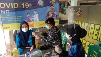Danlanal Babel Kolonel Laut (P) Dudik Kuswoyo.S.E.,M.Tr.Hanla melalui Balai Kesehatan Lanal Babel bekerja sama dengan Rumah Sakit Eko Maulana Ali Belinyu kembali melaksanakan serbuan vaksin di pelabuhan Batu dinding Kel. Mantung Kec. Belinyu Kab. Bangka. (Selasa, 29 Juni 2021)