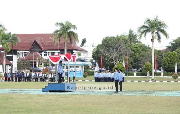 Upacara peringatan hari KORPRI ke-50 yang diikuti oleh jajaran ASN Pemprov. Babel khusus pejabat struktural mengingat untuk menghindari kerumunan, karena wabah Covid-19 belum berakhir.