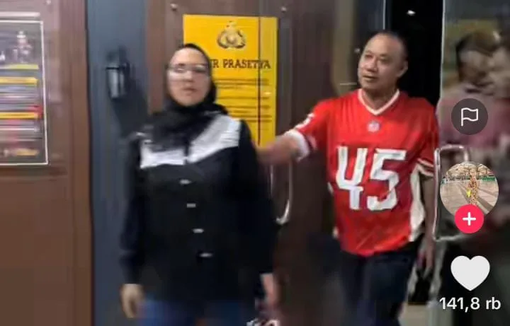 Kasat Pol PP Pangkalpinang, Efran, Tiba Mendampingi istrinya di Mapolresta Pangkalpinang, Jumat (19/12/2025) malam. (Tangkapan Layar Dari sosmed milik Ibu Suri Wakanda)