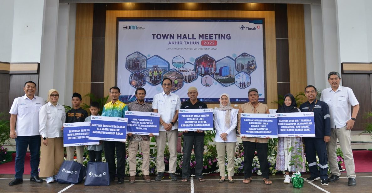 Bantuan ini diserahkan secara simbolis oleh Direktur Utama PT Timah Tbk, Achmad Ardianto beserta jajaran Direksi PT Timah Tbk usai kegiatan penandatangan balok terakhir tahun 2022, di Unit Metalurugi Muntok, Kabupaten Bangka Barat, Kamis (22/12/2022).