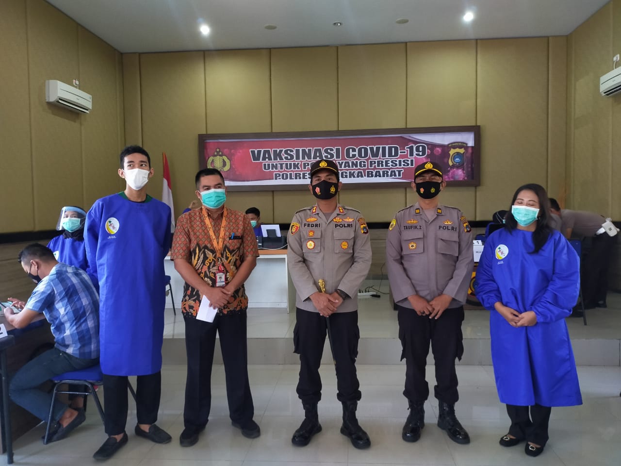 “kepada seluruh anggota Polres Bangka Barat untuk mengedukasi masyarakat bahwa vaksin ini aman dan sudah dilakukan uji klinis,” Ujar Kapolres Bangka Barat