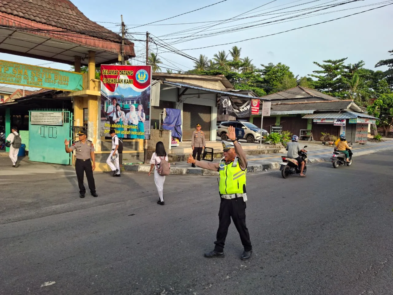 Personel Polres Bangka bersama jajaran Polsek disiagakan di sejumlah titik strategis, seperti persimpangan jalan, depan sekolah, pasar, hingga pusat-pusat keramaian.