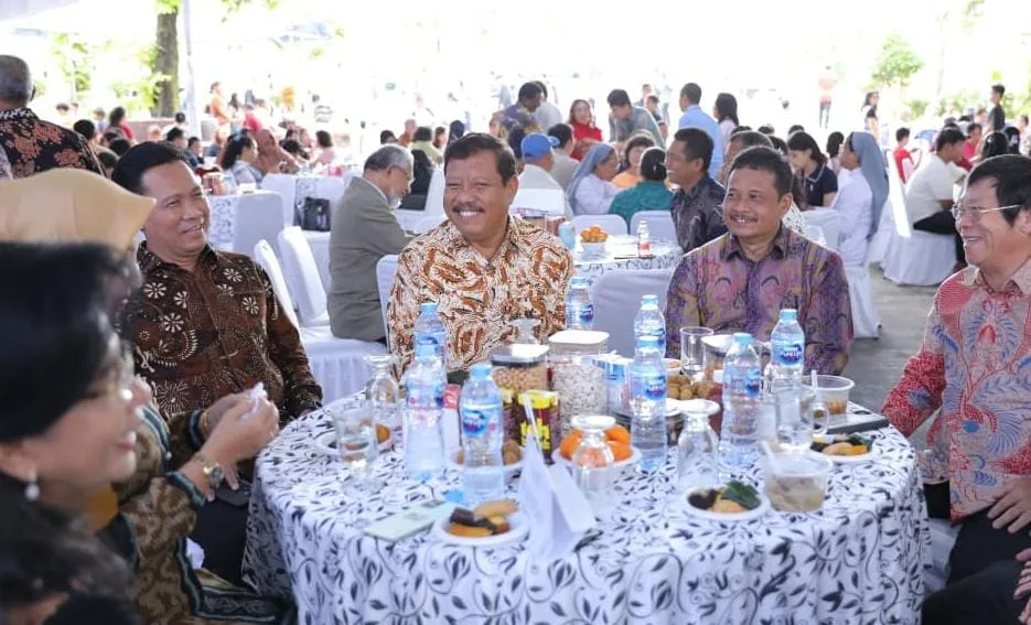 Seputarbabel.com, Pangkalpinang – Keuskupan Pangkalpinang, Kamis (1/1/2026) menggelar Open House Tahun Baru 2026. Semangat kebersamaan, toleransi antarumat beragama dan kerukunan lintas iman tercermin pada perayaan ini. Walikota Pangkalpinang, Saparudin Masyarif (Prof Udin) dan Pj Sekda Babel, Fery Afriyanto hadir langsung bersama beberapa tokoh dan undangan.