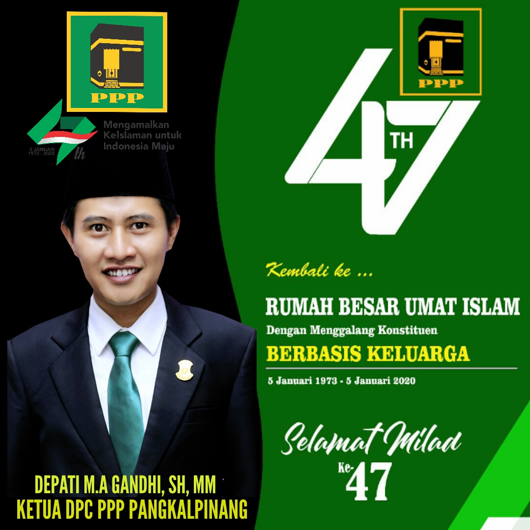 Seputarbabel.com, Pangkalpinang – 5 Januari 2020, Partai Persatuan Pembangunan (PPP) genap berumur 47 tahun. Memperingati hari lahir (harla) partai Ka’bah di Provinsi Kepulauan Bangka Belitung (Babel) akan menggelar berbagai acara, Sabtu (4/1/2020) malam ini. Salah satunya adalah sarasehan serentak di sekretariat DPW PPP Babel bersama DPC PPP dari 7 Kabupaten/Kota. Selain itu acara yang direncakan akan berlangsung ba’da isya diisi yasianan, doa bersama dan santunan bagi anak yatim.