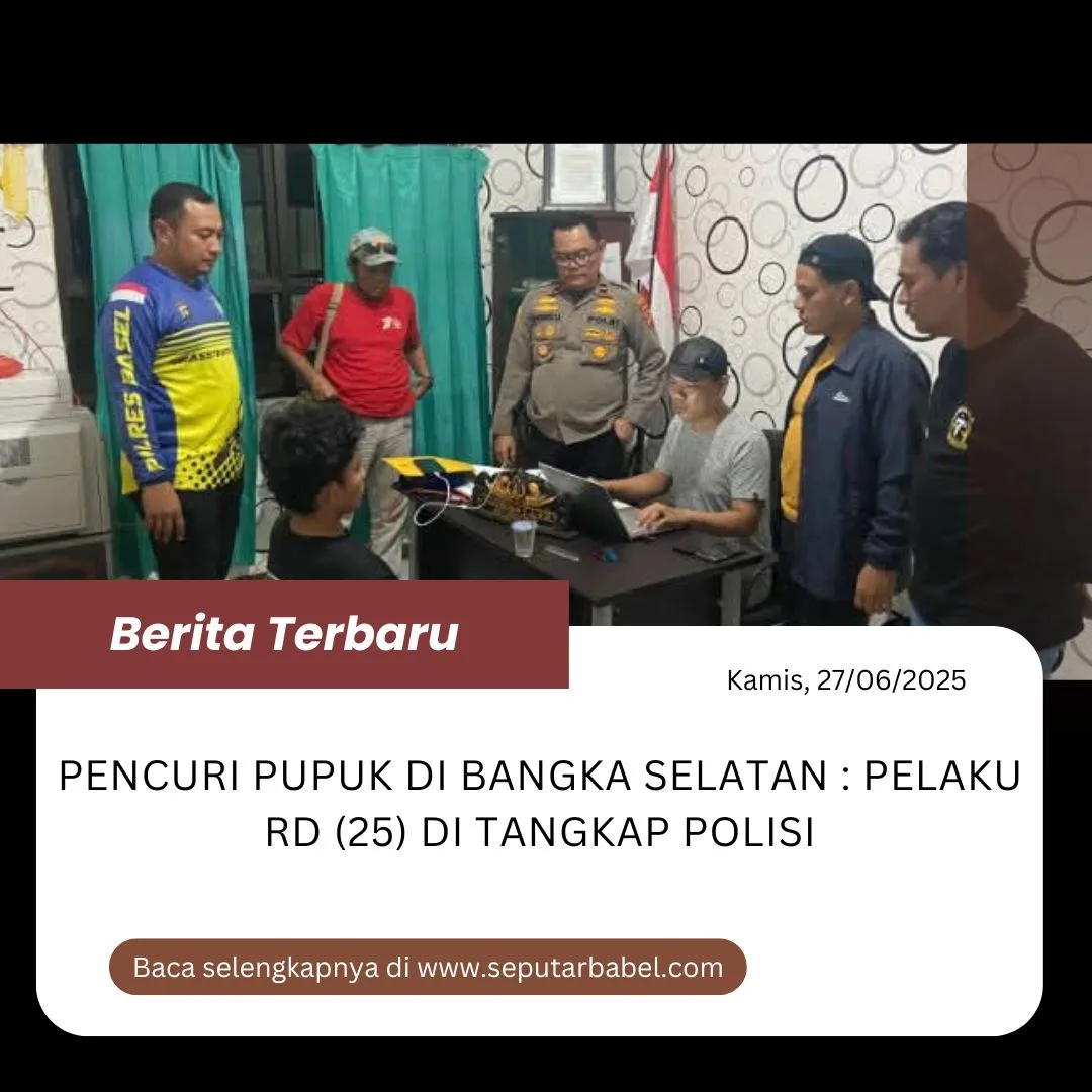 Bangka Selatan, seputarbabel.com – Pelaku pencurian pupuk di Tanjung Labu, Desa Lepar Pongok, Kabupaten Bangka Selatan, diringkus polisi. Jum’at (27/6/2025).