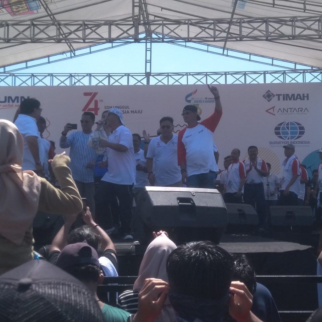 Seputarbabel.com, Pangkalpinang – Pukul 14.00 WIB rangkain peringatan hari ulang tahun (Hut) ke 43 PT Timah, Pesta Rakyat 2019 selesai. Panitia penyelenggara puncak acara peringat hari jadi PT Timah Tbk, Minggu (18/8/2019) ini digelar. Berlokasi di lapangan upacara PT Timah tadi, juga merupakan kegiatan peringatan hari kemerdekaan ke 74.