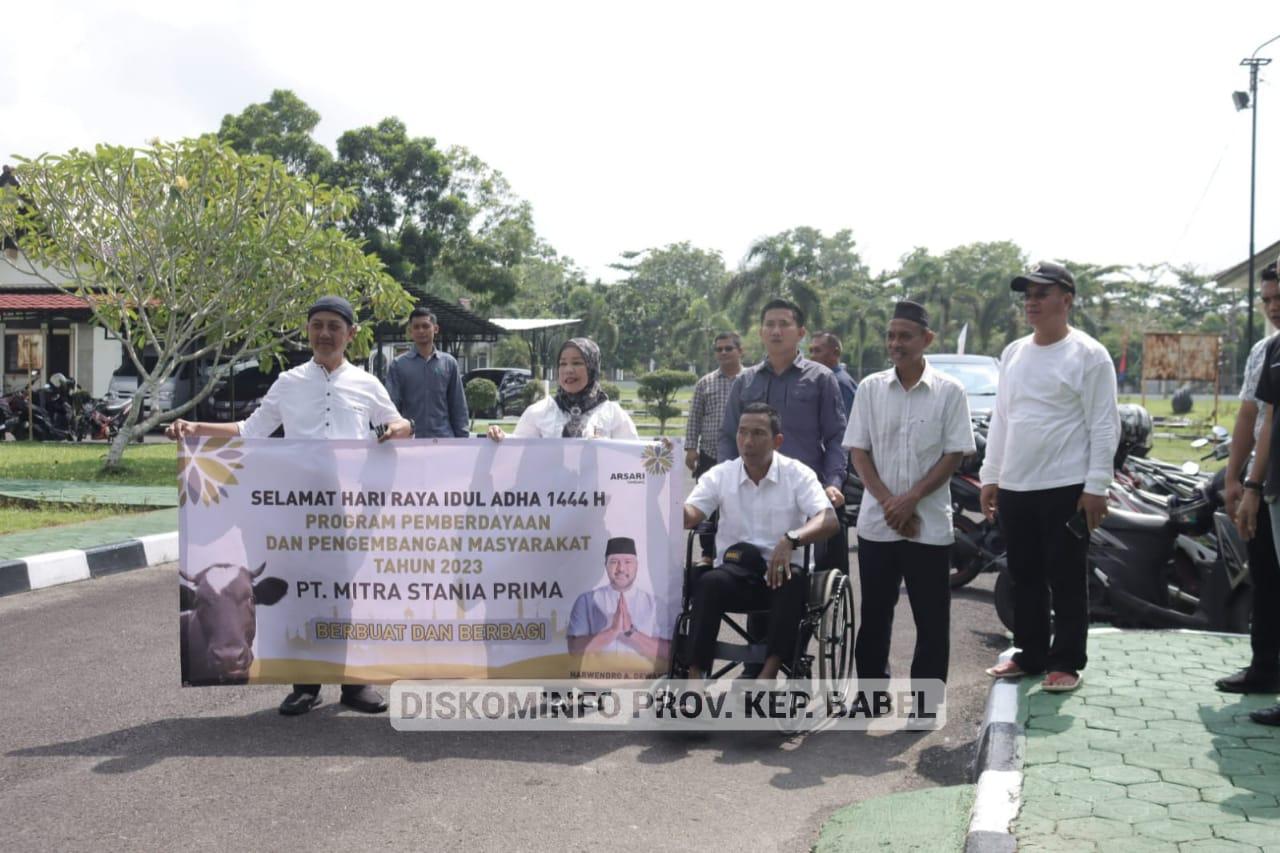 Manager Government PT Mitra Stania Prima, Desi, yang hadir menyerahkan langsung sapi kurban ke Pj Gubernur Suganda, menyampaikan bahwa sapi kurban dari PT Mitra Stania Prima, merupakan pelaksanaan Program Pemberdayaan dan Pengembangan Masyarakat Tahun 2023.