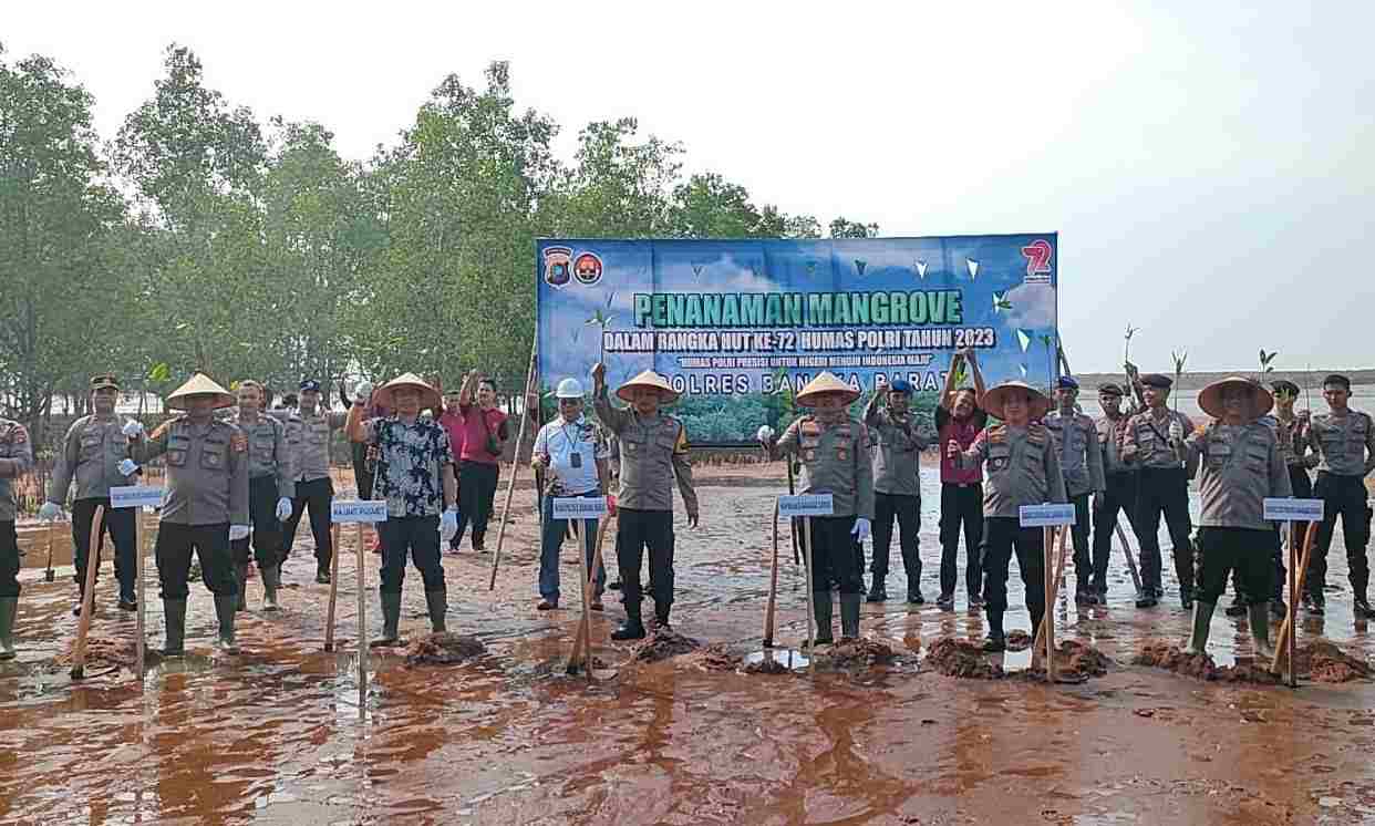 Penanaman mangrove dalam rangka HUT ke-72 Humas Polri ini turut dihadiri oleh Kapolres Bangka Barat AKBP Ade Zamrah, Kepala Unit Metalurgi Muntok, Ebbi Wibisana dan masyarakat. Kapolres Bangka Barat AKBP Ade Zamrah mengatakan, penanaman mangrove dilaksanakan oleh kepolisian sebagai upaya menjaga pelestarian lingkungan.