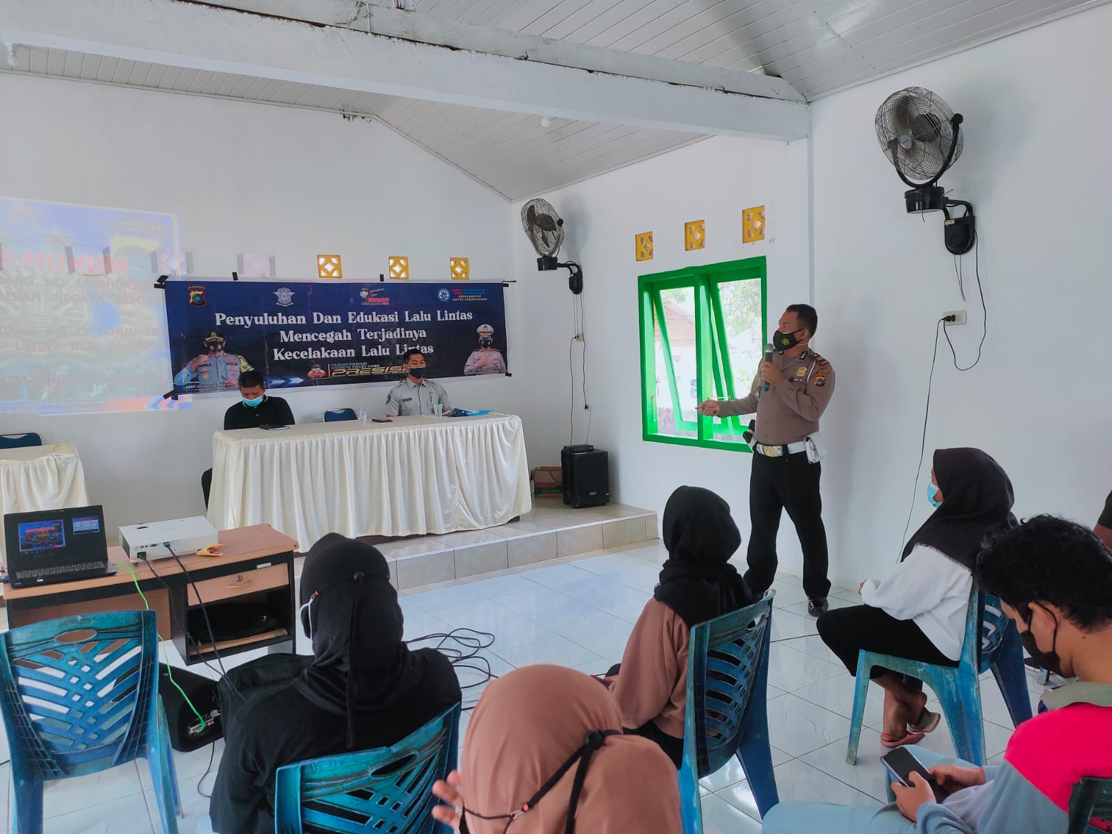 Babar, seputarbabel.com — Masih tingginya angka kecelakaan lalu lintas yang melibatkan Masyarakat di Kabupaten Bangka Barat mendorong Satuan Lalu Lintas (Satlantas) Polres Babar semakin gencar melakukan sosialisasi keselamatan dan tertib berlalu lintas di Desa-desa, Sosialisasi terbaru dilakukan Satlantas di Desa Pangek , Jumat (10/9/2021).