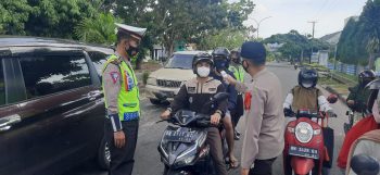 Kasat lantas juga menambahkan selain melakukan pengecekan suhu tubuh, juga memberi himbaun kepada pengguna jalan untuk selalu menerapkan protokol kesehatan, dan memberi himbaun larangan mudik.