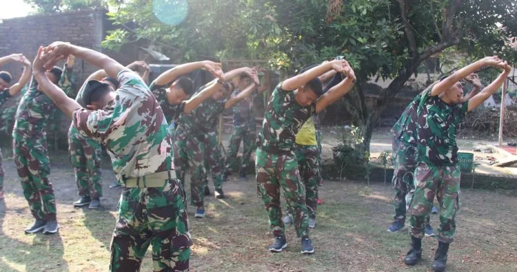 Kegiatan ini dilakukan untuk menjaga kedisiplinan, kesehatan, serta kesiapan personel sebelum dan sesudah melaksanakan pekerjaan fisik.Kegiatan tersebut diikuti personel TNI, Polri, serta masyarakat setempat.