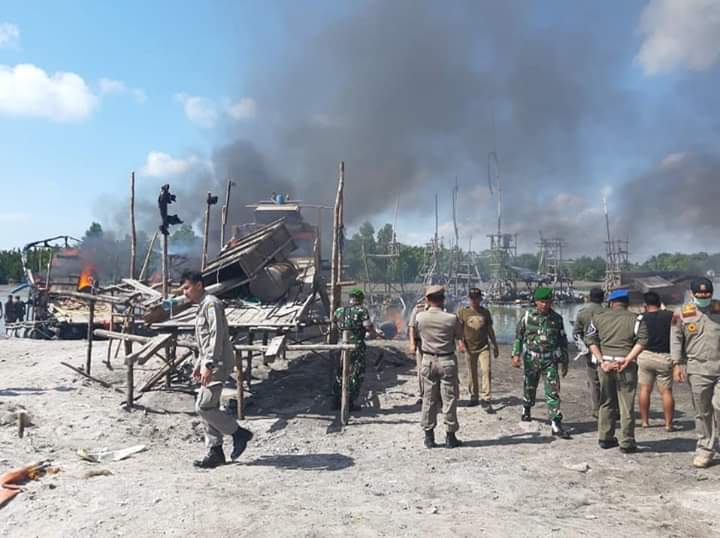Dalam razia ini Tim Gabungan langsung melakukan tindakan tegas dengan membakar ponton Tambang Ilegal (mesin dan alat lainnya) dan juga sakan.
