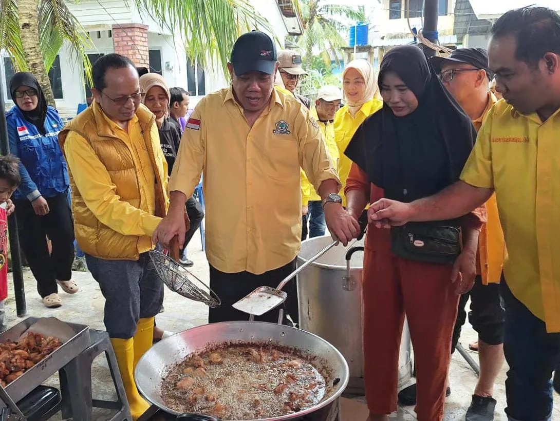 Seputarbabel.com, Bateng – Ketua DPD I Pantai Golkar Provinsi Kepulauan Bangka Belitung (Babel), Hidayat Arsani dan Sekretaris DPD I Partai Golkar Babel, Algafri Rahman. Jalankan langsung perintah Ketua Umum Partai Golkar, Bahlil Lahadalia, agar menjamin gizi dan pasokan makanan warga korban bencana. Keduanya, dapat memastikan itu, ketika tinjau dapur umum di Kantor Kepala Desa Lubuk Lingkuk.