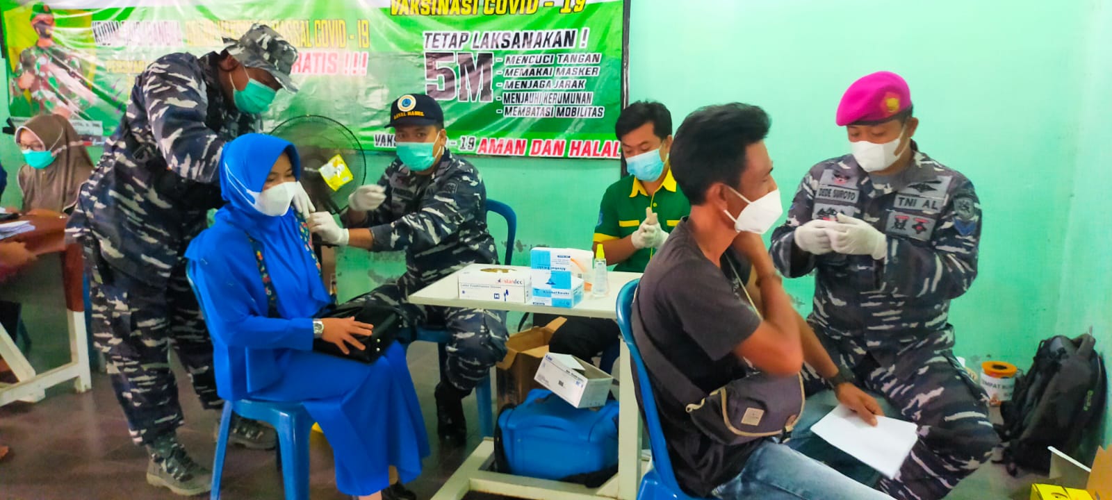 Kegiatan Vaksin di lakukan oleh tenaga kesehatan 11 orang yang terdiri dari 1 orang dokter dari Lanal Babel dan 10 orang tenaga kesehatan dan administrasi yang berasal dari Lanal Babel dan Puskesmas Belinyu.