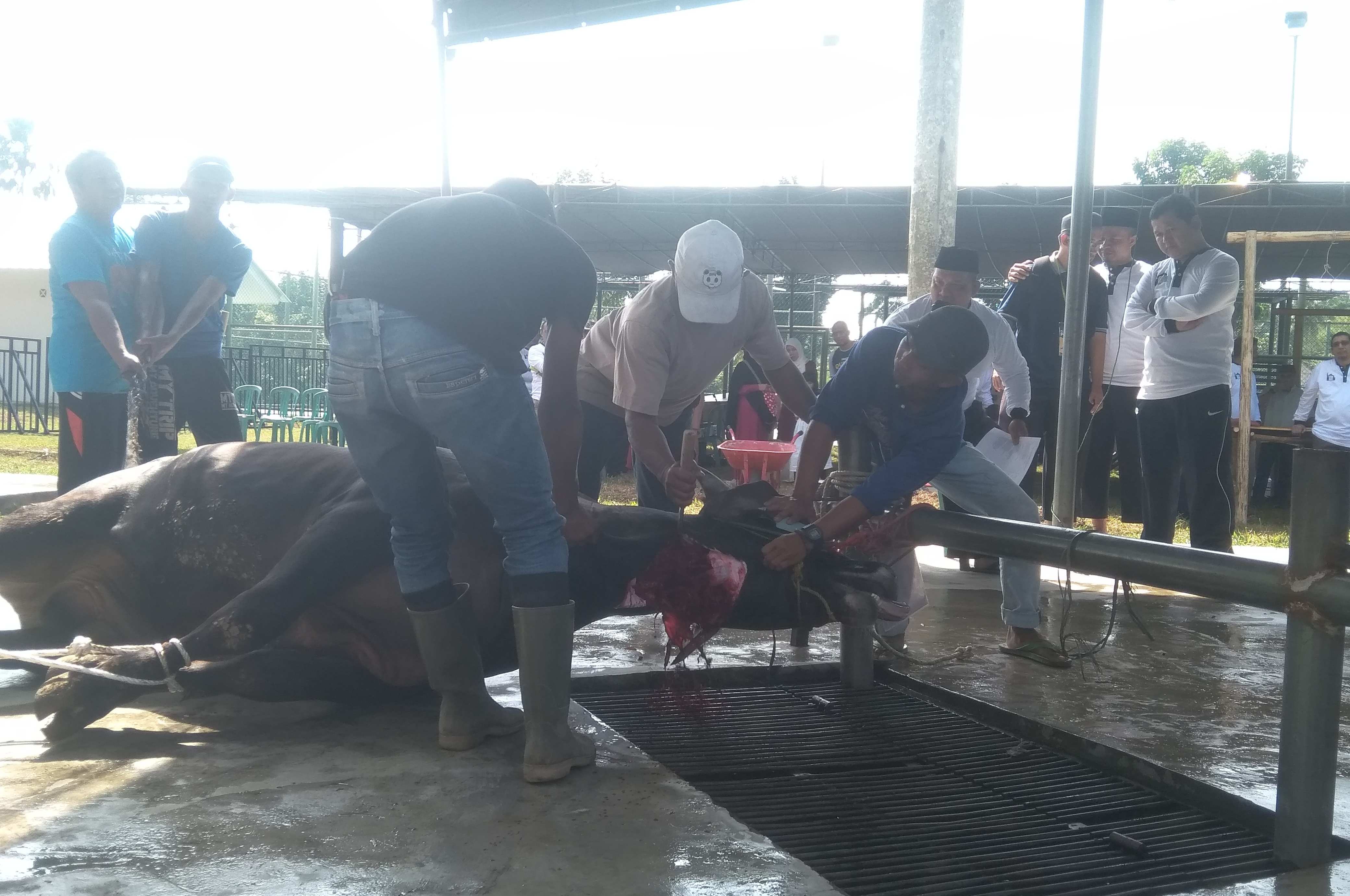 Seputarbabel.com, Bangka Barat – Unit Metalurgi (Unmet) Muntok PT Timah Tbk juga melakukan penyembelihan hewan qurban. 14 ekor sapi dan 5 ekor kambing usai disembelih, di Masjid Al Huda Komplek Peltim Muntok disalurkan ke masyarakat sekitar. Pemotongan dan pembagian hewan kurban sapi dan kambing itu disaksikan langsung oleh Kepala Unmet Muntok Wiyono.