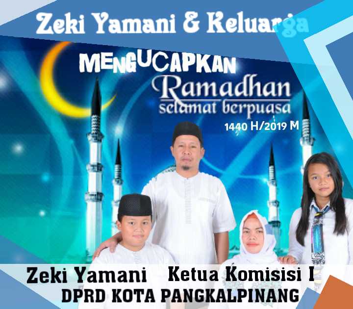 Zeki Yamani Anggota DPRD Kota Pangkalpinang, Mengucapkan Selamat Menunaikan Ibadah Puasa 1440H/2019 M Bagi Seluruh Masyarakat Kota Pangkalpinang.